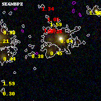 Black segments are analyzed here. Roll mouse over color images to view segments. Best viewed in a wide browser window (1200 pixels or more). Download SED & P(z) plots to view larger versions.