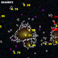Black segments are analyzed here. Roll mouse over color images to view segments. Best viewed in a wide browser window (1200 pixels or more). Download SED & P(z) plots to view larger versions.