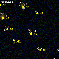 Black segments are analyzed here. Roll mouse over color images to view segments. Best viewed in a wide browser window (1200 pixels or more). Download SED & P(z) plots to view larger versions.