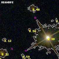 Black segments are analyzed here. Roll mouse over color images to view segments. Best viewed in a wide browser window (1200 pixels or more). Download SED & P(z) plots to view larger versions.