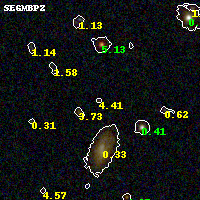 Black segments are analyzed here. Roll mouse over color images to view segments. Best viewed in a wide browser window (1200 pixels or more). Download SED & P(z) plots to view larger versions.