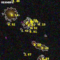 Black segments are analyzed here. Roll mouse over color images to view segments. Best viewed in a wide browser window (1200 pixels or more). Download SED & P(z) plots to view larger versions.