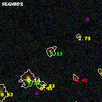 Black segments are analyzed here. Roll mouse over color images to view segments. Best viewed in a wide browser window (1200 pixels or more). Download SED & P(z) plots to view larger versions.