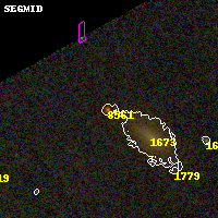 Object #8561   x,y = (302, 5425)   RA, Dec = (16:15:58.272, -6:06:59.04) = (243.99280, -6.11640)   BPZ = 1.249 [0.926--2.269]   type = 2.10 (Ell6_A_0 - Ell5_A_0)   chisq2 = 0.00   ODDS = 0.39   z_cluster = 0.203