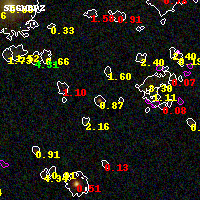 Black segments are analyzed here. Roll mouse over color images to view segments. Best viewed in a wide browser window (1200 pixels or more). Download SED & P(z) plots to view larger versions.