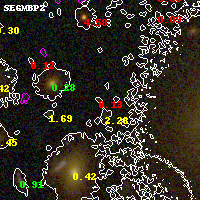 Black segments are analyzed here. Roll mouse over color images to view segments. Best viewed in a wide browser window (1200 pixels or more). Download SED & P(z) plots to view larger versions.