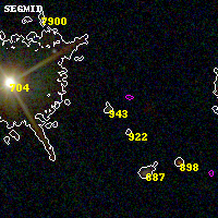 Black segments are analyzed here. Roll mouse over color images to view segments. Best viewed in a wide browser window (1200 pixels or more). Download SED & P(z) plots to view larger versions.