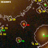 Object #1155 x,y = (2753, 3601) RA, Dec = (16:15:48.432, -6:08:48.84) = (243.95180, -6.14690) BPZ = 0.583 [0.556--4.616] type = 4.00 (Ell4_A_0) chisq2 = 2.28 ODDS = 0.57 z_cluster = 0.203