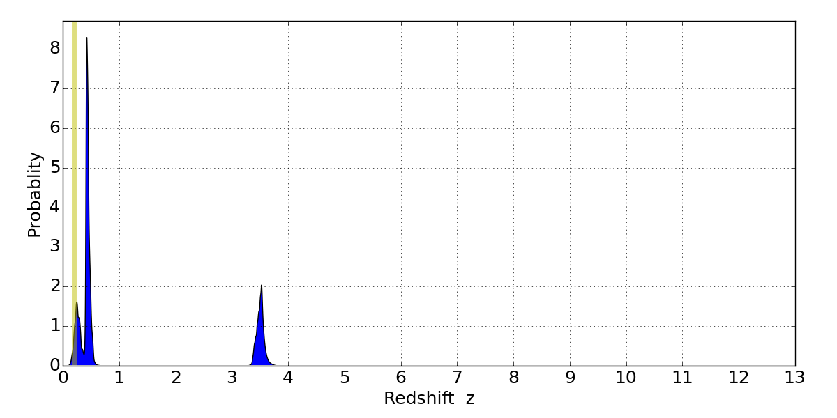 Best viewed in a wide browser window (1200 pixels or more). Download SED & P(z) plots to view larger versions.