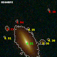 Object #1259   x,y = (3530, 3463)   RA, Dec = (16:15:45.288, -6:08:57.12) = (243.93870, -6.14920)   BPZ = 4.347 [0.444--5.248]   type = 9.50 (SB3_B10 - SB2_B10)   chisq2 = 0.60   ODDS = 0.38   z_cluster = 0.203