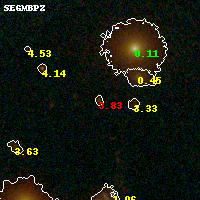 Object #1262 x,y = (3276, 3460) RA, Dec = (16:15:46.320, -6:08:57.12) = (243.94300, -6.14920) BPZ = 3.825 [0.324--4.188] type = 9.50 (SB3_B10 - SB2_B10) chisq2 = 1.24 ODDS = 0.54 z_cluster = 0.203