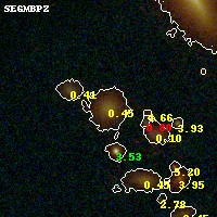 Object #1331 x,y = (3448, 3306) RA, Dec = (16:15:45.624, -6:09:06.48) = (243.94010, -6.15180) BPZ = 0.447 [0.029--0.542] type = 7.90 (SB1_B10 - Scd_B10) chisq2 = 0.16 ODDS = 0.73 z_cluster = 0.203