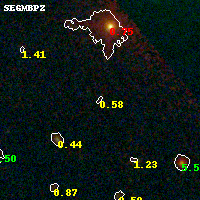 Object #14 x,y = (2989, 6061) RA, Dec = (16:15:47.472, -6:06:21.24) = (243.94780, -6.10590) BPZ = 0.576 [0.140--5.193] type = 8.40 (SB1_B10 - SB2_B10) chisq2 = 0.29 ODDS = 0.07 z_cluster = 0.203