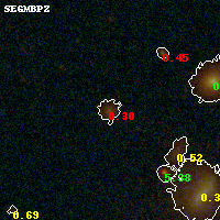 Object #1433 x,y = (3651, 3250) RA, Dec = (16:15:44.808, -6:09:09.72) = (243.93670, -6.15270) BPZ = 0.303 [0.029--3.873] type = 7.80 (SB1_B10 - Scd_B10) chisq2 = 1.22 ODDS = 0.15 z_cluster = 0.203