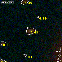 Object #1450 x,y = (3536, 3115) RA, Dec = (16:15:45.264, -6:09:18.00) = (243.93860, -6.15500) BPZ = 0.435 [0.250--0.564] type = 8.30 (SB1_B10 - SB2_B10) chisq2 = 0.16 ODDS = 0.65 z_cluster = 0.203