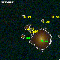 Object #146 x,y = (2008, 5430) RA, Dec = (16:15:51.408, -6:06:59.04) = (243.96420, -6.11640) BPZ = 0.594 [0.133--4.076] type = 10.20 (SB3_B10 - SB11_A_0_l) chisq2 = 0.14 ODDS = 0.15 z_cluster = 0.203
