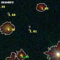 Object #152 x,y = (2405, 5435) RA, Dec = (16:15:49.824, -6:06:58.68) = (243.95760, -6.11630) BPZ = 1.007 [0.099--3.709] type = 9.80 (SB3_B10 - SB2_B10) chisq2 = 0.31 ODDS = 0.15 z_cluster = 0.203