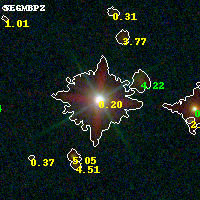 Object #164 x,y = (2499, 5354) RA, Dec = (16:15:49.440, -6:07:03.36) = (243.95600, -6.11760) BPZ = 0.198 [0.129--0.215] type = 9.70 (SB3_B10 - SB2_B10) chisq2 = 0.53 ODDS = 0.93 z_cluster = 0.203