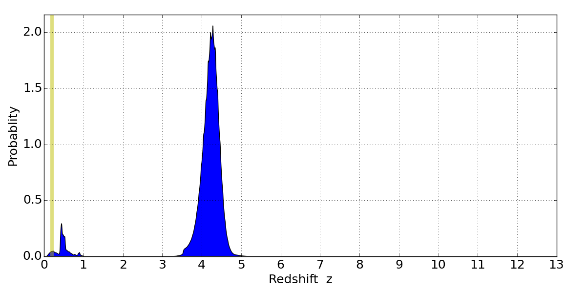 Best viewed in a wide browser window (1200 pixels or more). Download SED & P(z) plots to view larger versions.