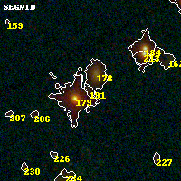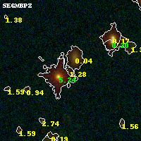 Object #191 x,y = (2838, 5329) RA, Dec = (16:15:48.072, -6:07:04.80) = (243.95030, -6.11800) BPZ = 1.276 [0.156--2.976] type = 8.60 (SB2_B10 - SB1_B10) chisq2 = 0.02 ODDS = 0.18 z_cluster = 0.203