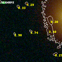 Object #1920 x,y = (4322, 2181) RA, Dec = (16:15:42.120, -6:10:13.80) = (243.92550, -6.17050) BPZ = 2.738 [0.148--3.273] type = 9.70 (SB3_B10 - SB2_B10) chisq2 = 0.01 ODDS = 0.21 z_cluster = 0.203