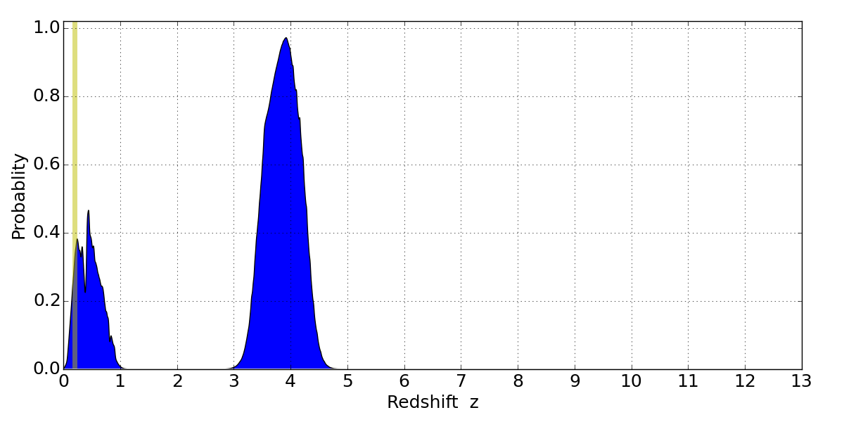 Best viewed in a wide browser window (1200 pixels or more). Download SED & P(z) plots to view larger versions.
