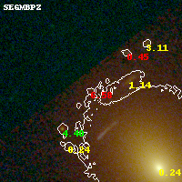 Object #264 x,y = (1443, 5187) RA, Dec = (16:15:53.688, -6:07:13.44) = (243.97370, -6.12040) BPZ = 6.575 [1.200--7.107] type = 9.80 (SB3_B10 - SB2_B10) chisq2 = 1.28 ODDS = 0.71 z_cluster = 0.203