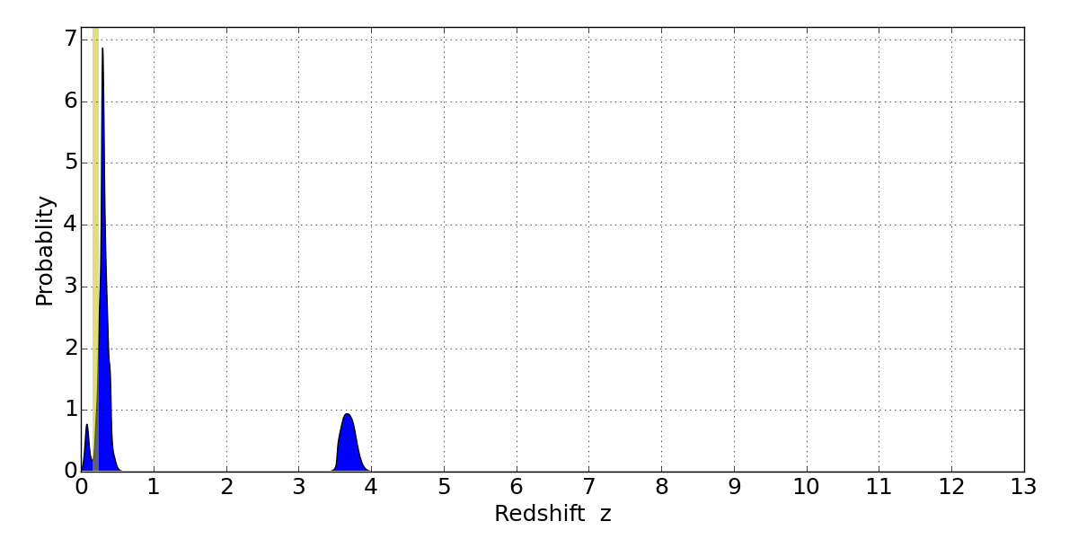Best viewed in a wide browser window (1200 pixels or more). Download SED & P(z) plots to view larger versions.