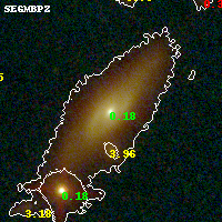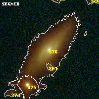 Object #376 x,y = (2375, 4874) RA, Dec = (16:15:49.944, -6:07:32.16) = (243.95810, -6.12560) BPZ = 0.185 [0.156--0.212] type = 4.10 (Ell4_A_0 - ES0_B10) chisq2 = 0.17 ODDS = 1.00 z_cluster = 0.203
