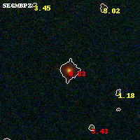 Object #416 x,y = (1650, 4829) RA, Dec = (16:15:52.848, -6:07:35.04) = (243.97020, -6.12640) BPZ = 0.829 [0.798--0.864] type = 4.00 (Ell4_A_0) chisq2 = 1.23 ODDS = 1.00 z_cluster = 0.203