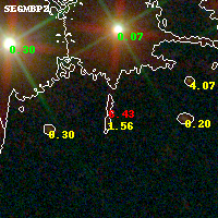 Object #515 x,y = (3326, 4666) RA, Dec = (16:15:46.128, -6:07:44.76) = (243.94220, -6.12910) BPZ = 6.430 [1.090--7.759] type = 9.20 (SB2_B10 - SB3_B10) chisq2 = 2.26 ODDS = 0.47 z_cluster = 0.203
