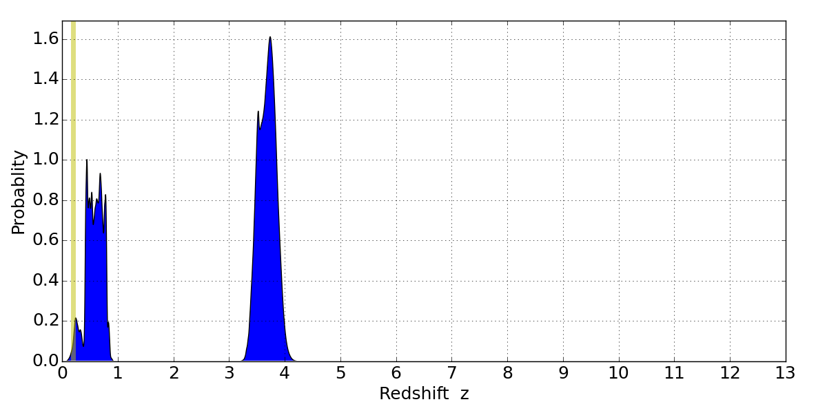 Best viewed in a wide browser window (1200 pixels or more). Download SED & P(z) plots to view larger versions.