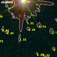 Object #571 x,y = (2827, 4585) RA, Dec = (16:15:48.120, -6:07:49.80) = (243.95050, -6.13050) BPZ = 0.387 [0.186--3.523] type = 6.30 (Sbc_B10 - Scd_B10) chisq2 = 0.35 ODDS = 0.08 z_cluster = 0.203