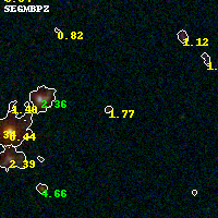 Object #66 x,y = (2869, 5813) RA, Dec = (16:15:47.952, -6:06:36.00) = (243.94980, -6.11000) BPZ = 1.775 [1.006--2.740] type = 9.60 (SB3_B10 - SB2_B10) chisq2 = 0.72 ODDS = 0.22 z_cluster = 0.203
