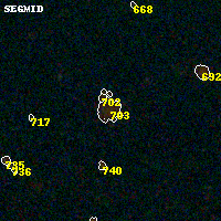 Object #703 x,y = (4069, 4334) RA, Dec = (16:15:43.128, -6:08:04.56) = (243.92970, -6.13460) BPZ = 0.368 [0.091--3.505] type = 8.00 (SB1_B10) chisq2 = 0.18 ODDS = 0.41 z_cluster = 0.203