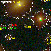 Object #804 x,y = (2463, 4168) RA, Dec = (16:15:49.584, -6:08:14.64) = (243.95660, -6.13740) BPZ = 1.808 [1.290--2.768] type = 10.30 (SB3_B10 - SB11_A_0_l) chisq2 = 0.60 ODDS = 0.29 z_cluster = 0.203