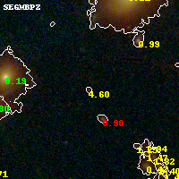 Object #821 x,y = (4416, 4142) RA, Dec = (16:15:41.736, -6:08:16.08) = (243.92390, -6.13780) BPZ = 4.601 [0.300--5.352] type = 7.90 (SB1_B10 - Scd_B10) chisq2 = 0.32 ODDS = 0.39 z_cluster = 0.203