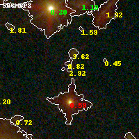 Object #845 x,y = (2549, 4106) RA, Dec = (16:15:49.248, -6:08:18.24) = (243.95520, -6.13840) BPZ = 2.922 [0.178--3.629] type = 10.40 (SB3_B10 - SB11_A_0_l) chisq2 = 0.63 ODDS = 0.22 z_cluster = 0.203