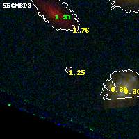 Object #1063 x,y = (1487, 1148) RA, Dec = (23:08:25.680, -2:12:49.68) = (347.10700, -2.21380) BPZ = 1.254 [0.136--2.857] type = 9.80 (SB3_B10 - SB2_B10) chisq2 = 0.39 ODDS = 0.38 z_cluster = 0.297