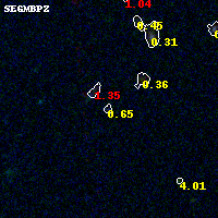Object #116 x,y = (1261, 3303) RA, Dec = (23:08:26.592, -2:10:40.44) = (347.11080, -2.17790) BPZ = 0.650 [0.369--2.618] type = 10.50 (SB11_A_0_l - SB3_B10) chisq2 = 0.50 ODDS = 0.21 z_cluster = 0.297