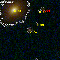 Object #150 x,y = (3217, 3199) RA, Dec = (23:08:18.768, -2:10:46.56) = (347.07820, -2.17960) BPZ = 0.714 [0.541--0.871] type = 8.00 (SB1_B10) chisq2 = 0.14 ODDS = 0.69 z_cluster = 0.297