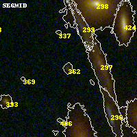 Object #362 x,y = (2821, 2754) RA, Dec = (23:08:20.352, -2:11:13.20) = (347.08480, -2.18700) BPZ = 3.968 [0.439--4.285] type = 9.00 (SB2_B10) chisq2 = 0.81 ODDS = 0.63 z_cluster = 0.297