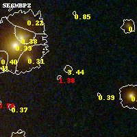 Object #423 x,y = (2641, 2643) RA, Dec = (23:08:21.072, -2:11:20.04) = (347.08780, -2.18890) BPZ = 3.438 [0.217--3.949] type = 9.40 (SB2_B10 - SB3_B10) chisq2 = 0.78 ODDS = 0.45 z_cluster = 0.297