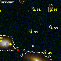 Object #472 x,y = (3136, 2503) RA, Dec = (23:08:19.080, -2:11:28.32) = (347.07950, -2.19120) BPZ = 4.325 [3.828--4.532] type = 9.50 (SB3_B10 - SB2_B10) chisq2 = 0.50 ODDS = 0.76 z_cluster = 0.297