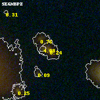Object #681 x,y = (1776, 2065) RA, Dec = (23:08:24.528, -2:11:54.60) = (347.10220, -2.19850) BPZ = 0.237 [0.155--0.276] type = 3.70 (Ell4_A_0 - Ell5_A_0) chisq2 = 0.32 ODDS = 0.87 z_cluster = 0.297