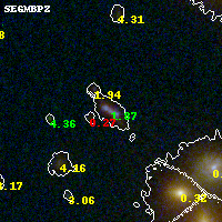 Object #742 x,y = (1508, 1900) RA, Dec = (23:08:25.608, -2:12:04.68) = (347.10670, -2.20130) BPZ = 1.866 [1.793--1.996] type = 8.90 (SB2_B10 - SB1_B10) chisq2 = 0.21 ODDS = 0.96 z_cluster = 0.297