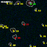 Object #882 x,y = (2638, 1596) RA, Dec = (23:08:21.072, -2:12:22.68) = (347.08780, -2.20630) BPZ = 0.771 [0.594--0.896] type = 9.00 (SB2_B10) chisq2 = 1.34 ODDS = 0.68 z_cluster = 0.297