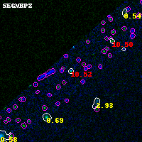 Black segments are analyzed here. Roll mouse over color images to view segments. Best viewed in a wide browser window (1200 pixels or more). Download SED & P(z) plots to view larger versions.