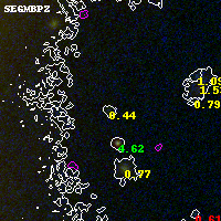 Black segments are analyzed here. Roll mouse over color images to view segments. Best viewed in a wide browser window (1200 pixels or more). Download SED & P(z) plots to view larger versions.