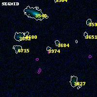 Black segments are analyzed here. Roll mouse over color images to view segments. Best viewed in a wide browser window (1200 pixels or more). Download SED & P(z) plots to view larger versions.